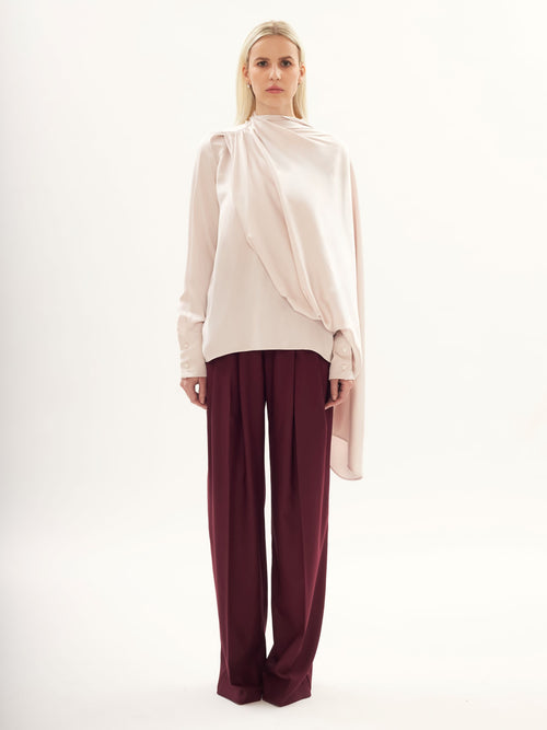 Draped Scarf Blouse in Dusty Pink